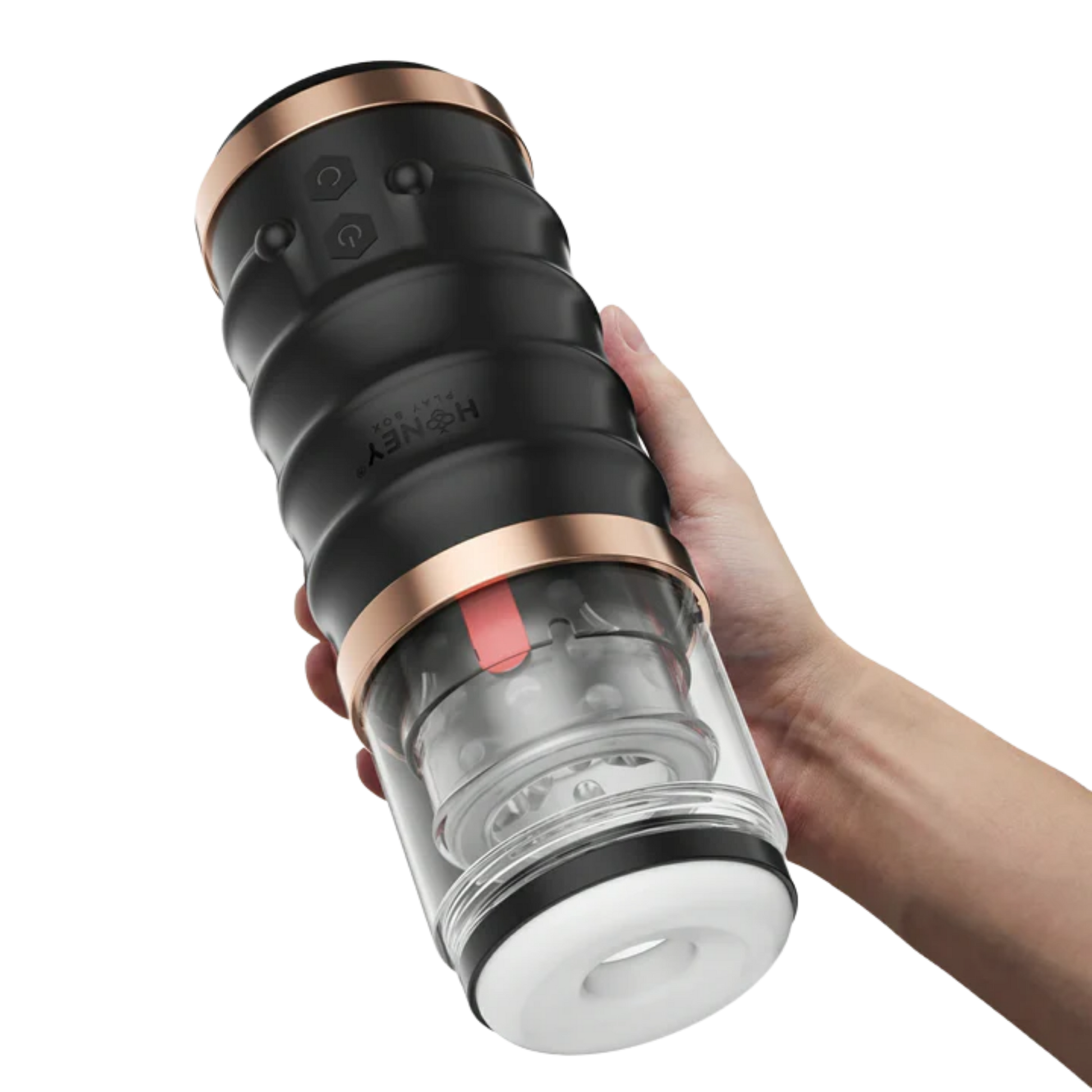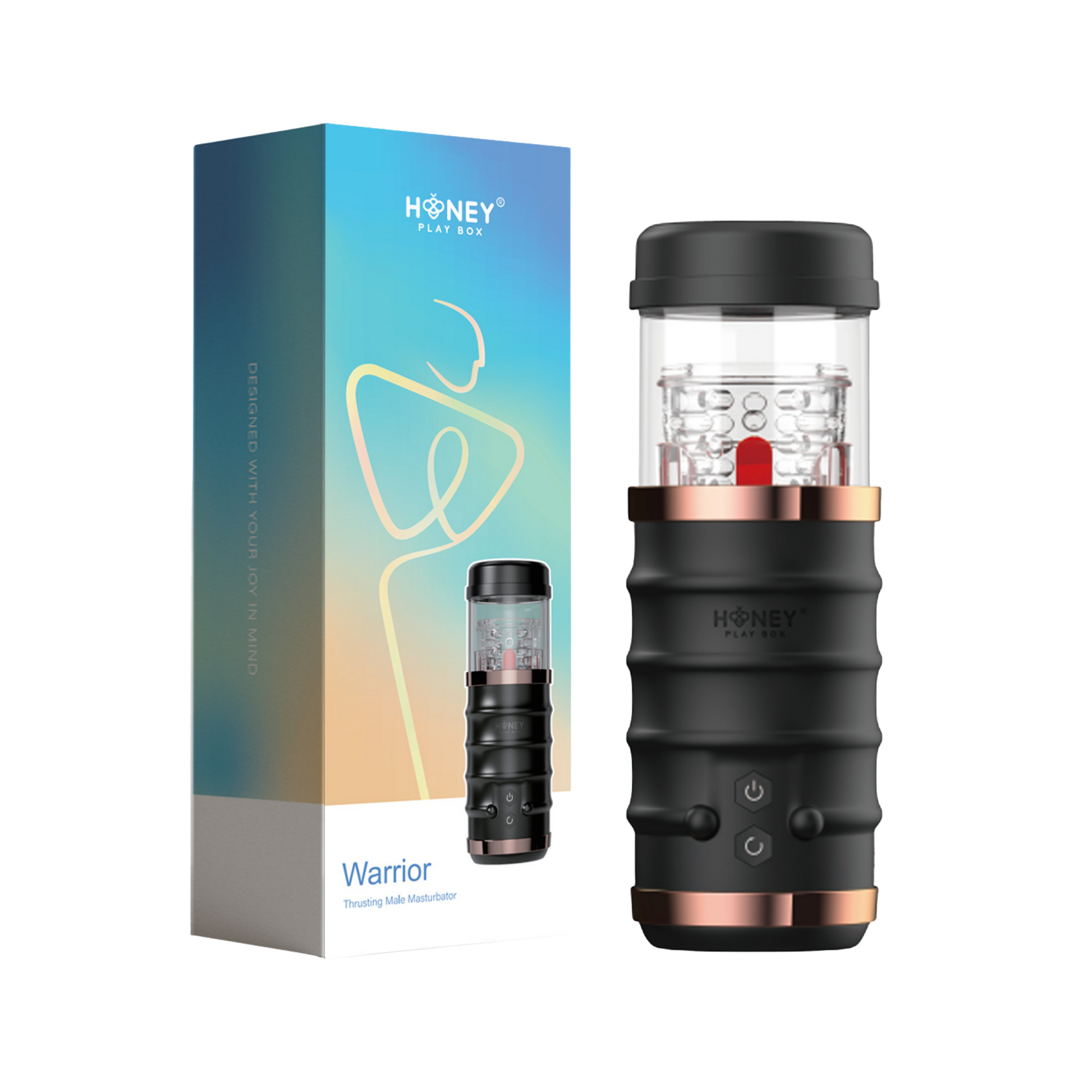 Experience full-power pleasure with the Warrior Thrusting Stroker, crafted to deliver deep, rhythmic stimulation that builds intensity with every movement. This automatic stroker blends thrusting, rotating motion, and targeted vibration to give you a strong, satisfying ride from start to finish. Whisper-quiet but undeniably powerful, the Warrior moves with precision while the soft, body-safe silicone sleeve wraps you in textured, lifelike sensation. From the masculine outer shell to the easy-clean removable insert, every detail is designed for performance, comfort, and pure indulgence.