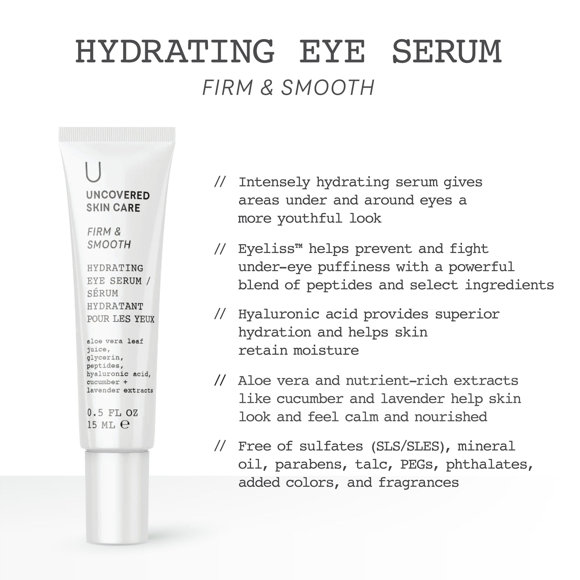 - Intensely hydrating serum gives areas under and around eyes a more youthful look.