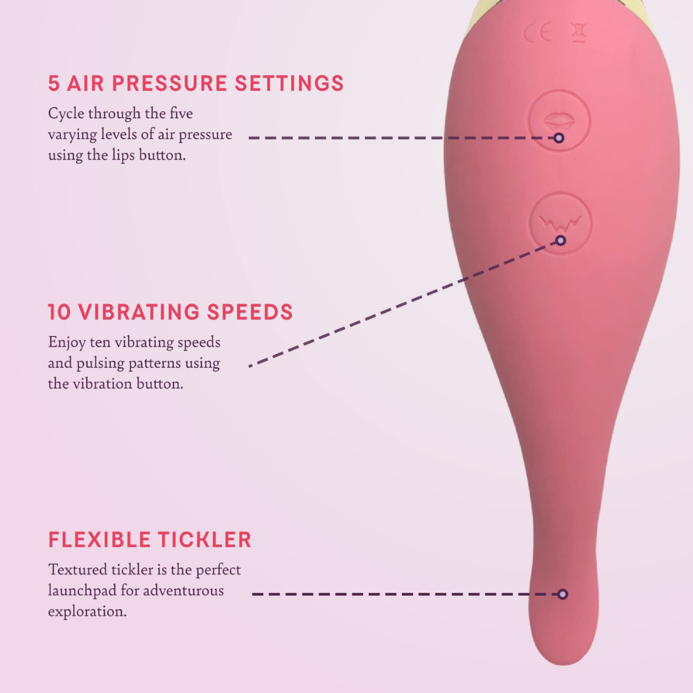 Press the lips button to activate the air pressure function. Cycle through the levels of air sensation to find your perfect intensity.