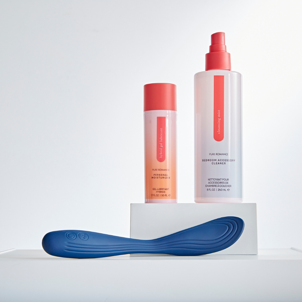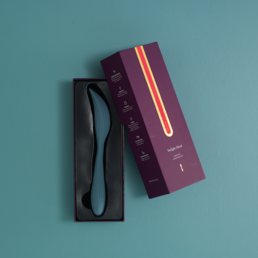 ✦ Bend Twilight Mood at the center for hands-free stimulation during intercourse. Just lubricant, insert vaginally and invite your partner to slip in alongside it for shared vibration.